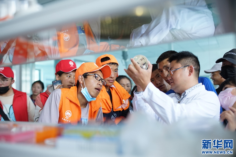 學(xué)生在參觀西藏大學(xué)的生物實(shí)驗室(8月12日攝)。新華社發(fā) (武建偉 攝)