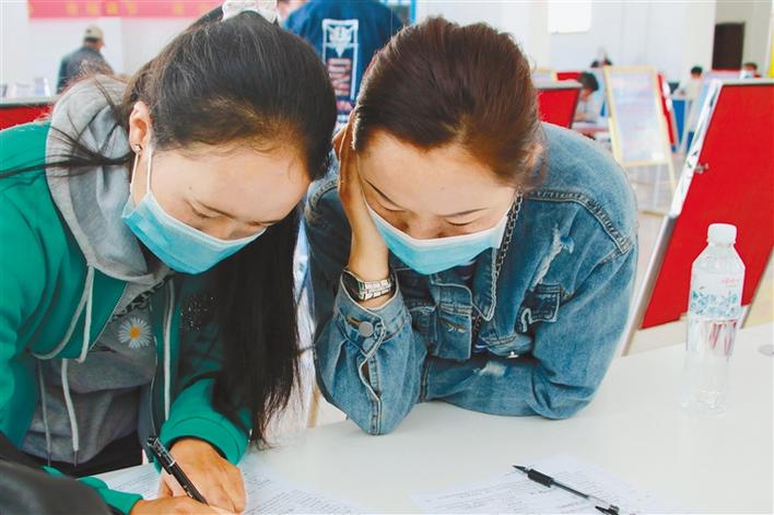 圖為應(yīng)聘者在填寫(xiě)報(bào)名表。記者 段敏 攝