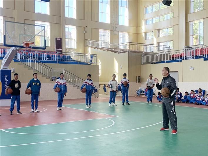 現(xiàn)場,王志國與學生對籃球打法和技巧進行了交流。