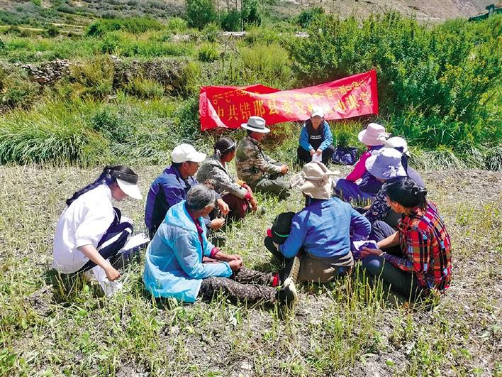 圖為西藏山南市錯(cuò)那縣委組織部部務(wù)會(huì)成員深入田間地頭對(duì)農(nóng)牧民黨員開(kāi)展黨課教育。次仁片多 索朗瓊珠 通訊員 李蒙 攝