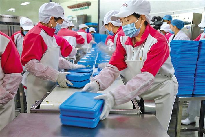 配餐中心忙碌的工作人員。