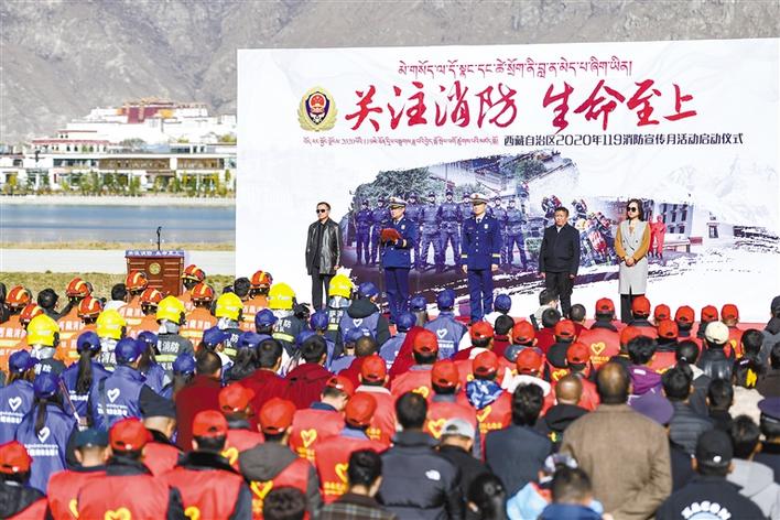 西藏自治區(qū)2020年119消防宣傳月活動(dòng)啟動(dòng)儀式現(xiàn)場。