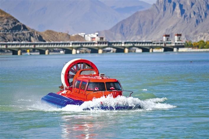 啟動(dòng)儀式現(xiàn)場的水陸兩棲氣墊船。