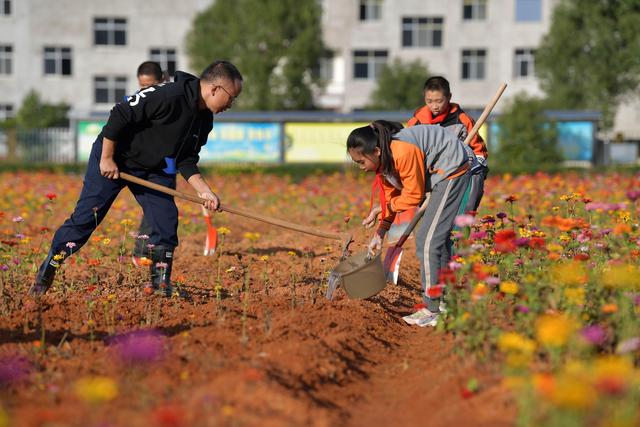 今年暑假剛剛到任江西省宜春市袁州區(qū)寨下鎮(zhèn)中心小學(xué)的殷大福校長看著教學(xué)樓前一大片長滿雜草的荒地,希望能在上面做點(diǎn)文章,讓孩子們課后有個(gè)休閑活動(dòng)的好去處。于是,他和老師們一起平整荒地,種下百日草的種子,開辟出花田和草坪。如今,昔日的荒地上已綻放出一片絢爛的花海,學(xué)生們的學(xué)習(xí)生活因此更加豐富多彩。美術(shù)課、十字繡興趣小組的同學(xué)紛紛到花田邊寫生、采風(fēng),孩子們在綠地里玩耍訓(xùn)練。每周,殷大福校長還會(huì)組織不同班級的學(xué)生下田勞動(dòng),為鮮花松土、施肥、澆水,讓他們親身體驗(yàn)守護(hù)生活中美好的滋味。呵護(hù)、陪伴、欣賞……一顆顆真善美的種子在學(xué)生們的心底悄然種下。