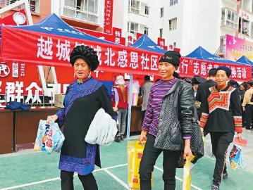 越西縣城北感恩社區(qū)舉辦的青春扶貧超市“互益行”積分行動(dòng)。