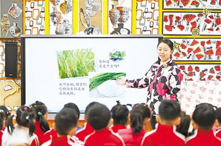 課堂上孩子們通過觀察、觸摸、分類,來了解谷物。