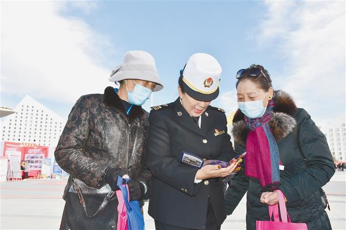 拉薩海關(guān)工作人員為過往群眾講解相關(guān)法律知識(shí)。王杰學(xué) 王雪 攝