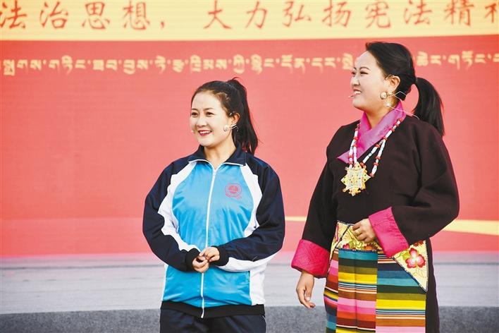 舞臺(tái)上,西藏自治區(qū)各級(jí)普法部門別出心裁地準(zhǔn)備了小品、相聲、歌曲、舞蹈等老百姓喜聞樂見的節(jié)目,為現(xiàn)場(chǎng)群眾送上了一臺(tái)豐盛的法治文化大餐。