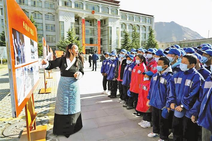拉薩組織學(xué)生參觀“西藏和平解放史”展板活動