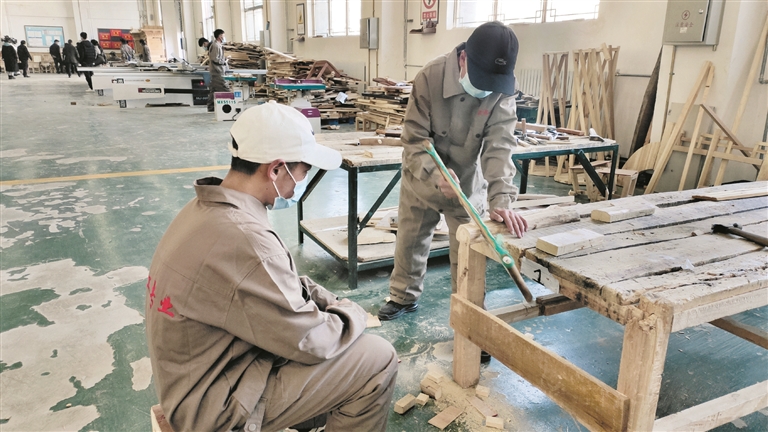 圖為該校木工專業(yè)的學生正在實操練習。余洋洋攝