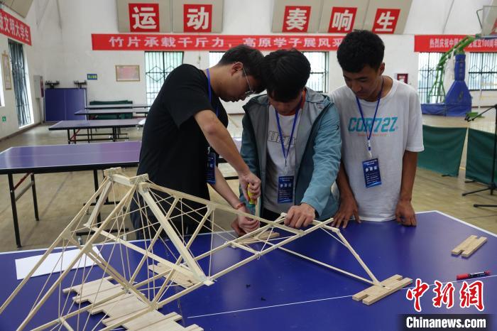 圖為第三屆西藏大學(xué)生結(jié)構(gòu)設(shè)計(jì)競(jìng)賽比賽現(xiàn)場(chǎng)。冉文娟 攝