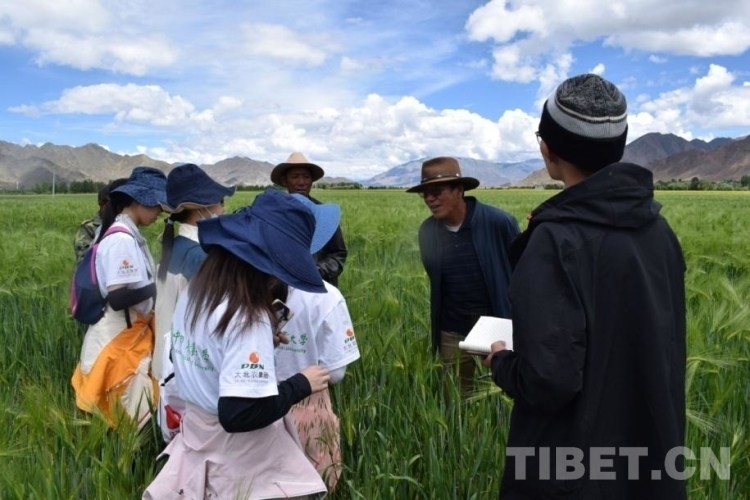 圖為中國農(nóng)業(yè)大學人文科考隊在青稞田里了解情況