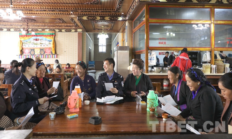 活動(dòng)現(xiàn)場,民警們積極向群眾發(fā)放各類宣傳資料及生活物品,宣傳黨的民族理論政策、民族宗教法律法規(guī)、《西藏自治區(qū)民族團(tuán)結(jié)進(jìn)步示范區(qū)創(chuàng)建條例》和有關(guān)民族團(tuán)結(jié)的優(yōu)秀人物故事,教育引導(dǎo)廣大人民群眾不斷增強(qiáng)愛國意識、法治意識、民族意識,根植“三個(gè)離不開”思想,始終做到“五個(gè)認(rèn)同”,攜手共譜民族團(tuán)結(jié)進(jìn)步新篇章。民警向駐地群眾重點(diǎn)宣講了習(xí)近平總書記在藏考察時(shí)關(guān)于民族團(tuán)結(jié)進(jìn)步的重要論述,介紹了西藏民族團(tuán)結(jié)進(jìn)步事業(yè)發(fā)展?fàn)顩r和取得的重大成就。