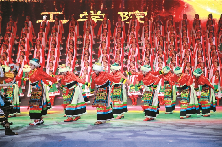 圖為文藝晚會上西藏大學(xué)師生們帶來優(yōu)美的舞蹈。拉薩融媒記者 楊濤攝