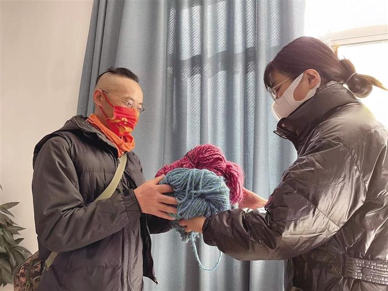 活動啟動后,有不少愛心人士前來領(lǐng)取毛線,大家精心挑選毛線的粗細(xì)、精心搭配花色,討論著針法,力爭為孩子們織出最好的針織品。