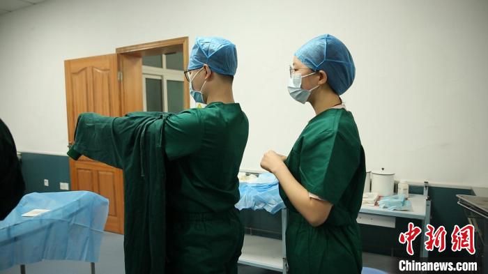 圖為學生在練習穿脫手術(shù)衣。(資料圖) 甘肅中醫(yī)藥大學第一臨床醫(yī)學院供圖