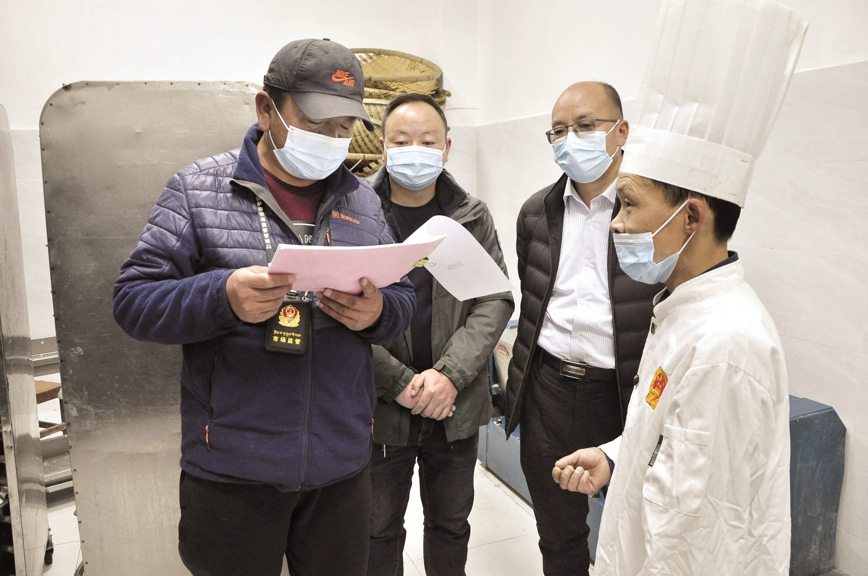 市市場監(jiān)督管理局執(zhí)法人員一行來到拉薩市北京中學(xué)學(xué)生食堂,檢查餐廳環(huán)境衛(wèi)生,隨后來到食堂后廚,查看后廚地面、廚房用具、食材操作間和食品加工工藝流程,現(xiàn)場檢查了消毒柜、食品留樣柜以及索證索票記錄本,指出其中存在的問題。拉薩市北京中學(xué)食堂負責(zé)人陳小芹告訴記者:“通過今年的招標(biāo),拉薩市北京中學(xué)的食材供貨商從拉薩凈土更換為地球第三極。如果食材出現(xiàn)任何問題,他們會立刻進行更換。我們會按照市市場監(jiān)督管理局和市教育局的要求,做好食品安全、防疫等各項工作?!?/p>