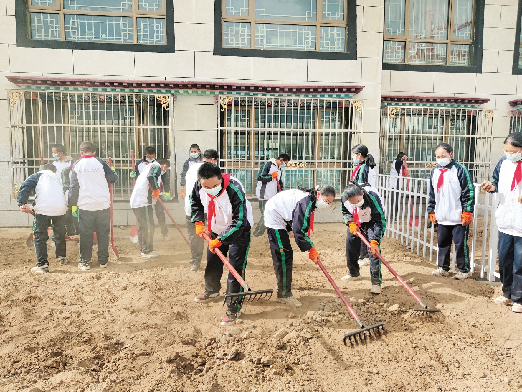 圖為學(xué)生勞動(dòng)現(xiàn)場(chǎng)。 拉薩融媒記者 余洋洋攝