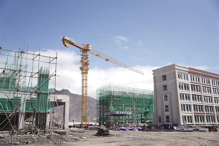 16日,記者在施工現場看到,拉薩市實驗小學教育城分校北面,很大一塊空地被擋板圍了起來,大型起吊機正在擋板內來回運轉。其中,有三棟樓已拔地而起,從外面看主體已經竣工。