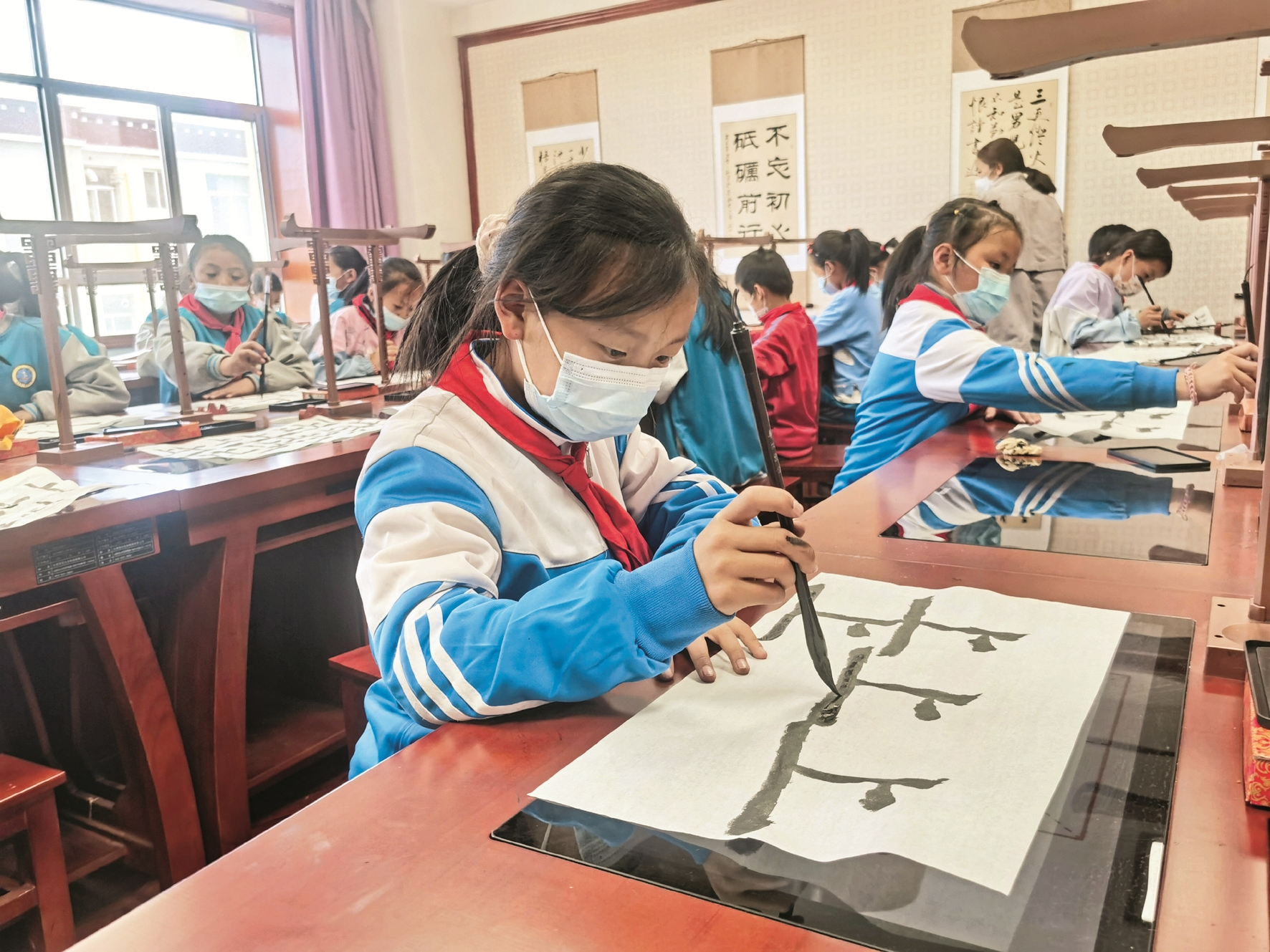 圖為智慧書法興趣課堂上學生們正在練習書法。 拉薩融媒記者 范江英攝