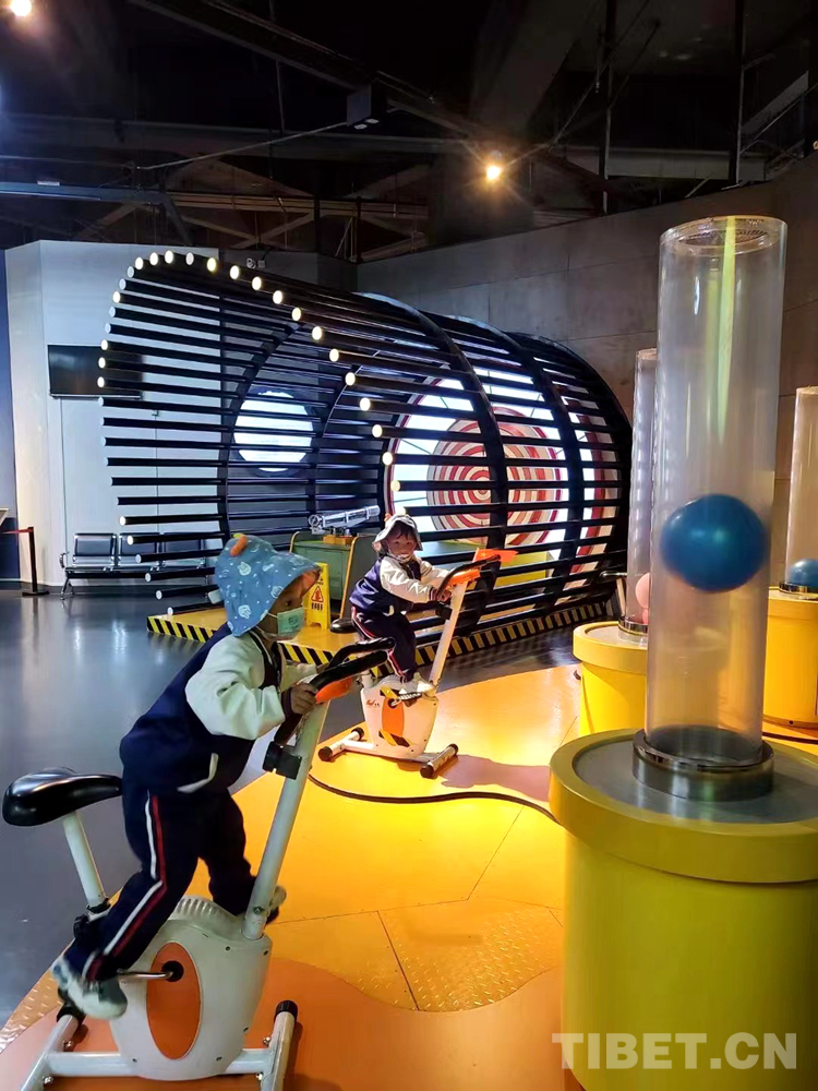 活動中,孩子們在西藏自然科學(xué)博物館深入認(rèn)識了西藏的生靈草木、萬水千山,近距離觀看曾經(jīng)在西藏生活過的遠(yuǎn)古大型生物昌都龍、喜馬拉雅魚龍等動物化石,領(lǐng)略雪豹、藏羚羊、桫欏等高原生命之美。孩子們在科技館的科學(xué)互動展項區(qū)也玩得不亦樂乎,他們不僅親身感受了動滑輪、動畫的形成等科學(xué)奧秘,還沉浸在了高仿真機器人、VR虛擬現(xiàn)實、4D影片帶來的全新高科技體驗中。為了活動形式更加豐富,西藏自然科學(xué)博物館還特意安排大家參觀了“黨領(lǐng)導(dǎo)下的科學(xué)家”主題展覽。
