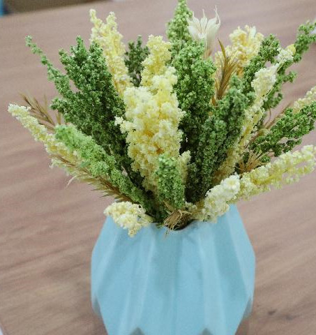 陳俊璋和公司團隊研發(fā)打造的藜麥永生花。新華社記者 文靜 攝