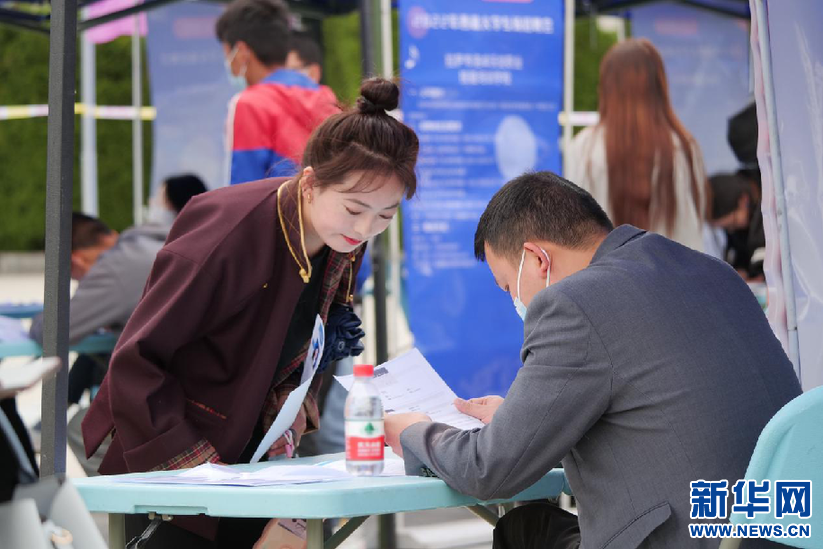 6月15日,應(yīng)屆畢業(yè)生在招聘會現(xiàn)場。新華網(wǎng) 旦增努布攝