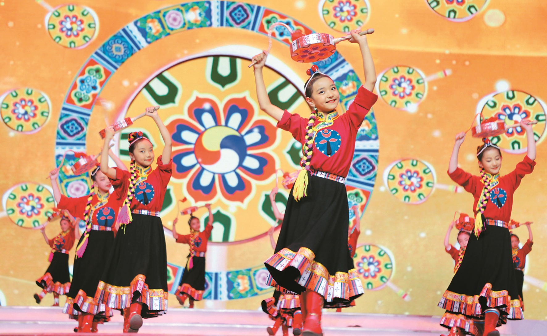 圖為拉薩市實驗小學(xué)學(xué)生表演的《格?;ㄩ_向未來》文藝節(jié)目。西藏日報特約記者 格桑倫珠攝