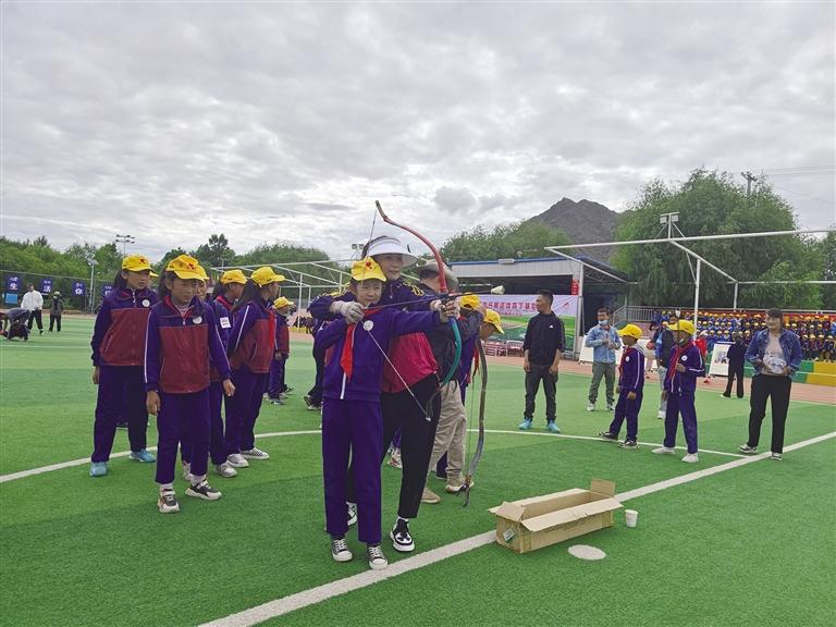 近日,由西藏自治區(qū)體育局主辦,自治區(qū)社體中心承辦,自治區(qū)馬術(shù)協(xié)會(huì)和曲水縣達(dá)嘎鎮(zhèn)小學(xué)協(xié)辦的2022年送民族傳統(tǒng)體育下基層活動(dòng)走進(jìn)拉薩市曲水縣達(dá)嘎鎮(zhèn)小學(xué)。校園操場上,學(xué)生們精神抖擻、全神貫注,立身對靶,手握弓把正中央,在老師的號(hào)令聲中,拉動(dòng)弓弦,利箭破風(fēng)而出,命中靶位……