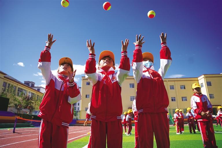 “網(wǎng)球真的太有意思了,我今天學(xué)習(xí)到了網(wǎng)球的發(fā)球知識(shí)和技巧,我特別開心,希望以后能有更多機(jī)會(huì)學(xué)習(xí)這項(xiàng)運(yùn)動(dòng)?!崩_市柳梧新區(qū)紅軍小學(xué)學(xué)生達(dá)瓦興奮地對記者說。5月13日,自治區(qū)“2022年網(wǎng)球進(jìn)校園活動(dòng)”在拉薩市柳梧新區(qū)紅軍小學(xué)開幕,自治區(qū)網(wǎng)球協(xié)會(huì)派出了專業(yè)的網(wǎng)球教練團(tuán)隊(duì)前往該小學(xué)與學(xué)生們一起互動(dòng)?!绑w育項(xiàng)目進(jìn)校園”活動(dòng)開展以來,西藏各學(xué)校不斷開展培訓(xùn),提升在校學(xué)生的思想文化和身體素質(zhì),促進(jìn)優(yōu)秀體育項(xiàng)目的傳承和發(fā)展,得到了學(xué)校、家長和學(xué)生的一致好評。