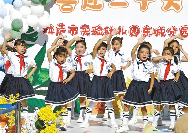 7月9日,拉薩市實驗幼兒園東城分園舉行“喜迎二十大 一起向未來”主題畢業(yè)典禮。孩子們用熱情洋溢的舞蹈、生動悅耳的歌聲,自信地展現(xiàn)所學(xué)的各類才藝和昂揚(yáng)向上的精神風(fēng)貌,精彩的表演贏得了陣陣掌聲,現(xiàn)場歡呼聲不斷。