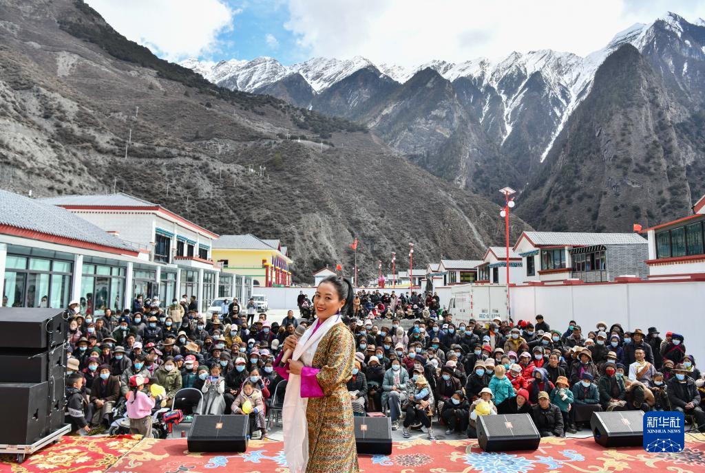 當(dāng)日,西藏山南市隆子縣藝術(shù)團(tuán)來(lái)到隆子縣斗玉珞巴民族鄉(xiāng)繞讓搬遷安置點(diǎn)開(kāi)展迎接藏歷新年文藝演出。據(jù)悉,該安置點(diǎn)的群眾于2023年1月上旬完成搬遷入住,他們將在新家迎接即將到來(lái)的藏歷新年。