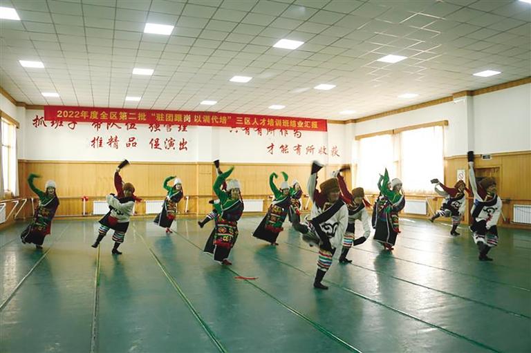 2022年3月,為進(jìn)一步做好全區(qū)縣區(qū)舞蹈演員專業(yè)技能的提升工作,自治區(qū)歌舞團(tuán)啟動(dòng)了全區(qū)第二批“駐團(tuán)跟崗、以訓(xùn)代培”日喀則市、阿里地區(qū)藝術(shù)團(tuán)舞蹈演員培訓(xùn)工作。自治區(qū)歌舞團(tuán)黨委副書記、團(tuán)長(zhǎng)高英介紹,第二批參訓(xùn)學(xué)員分別來自阿里地區(qū)措勤縣、改則縣、革吉縣、普蘭縣、日土縣,和日喀則市亞東縣、昂仁縣、定日縣、薩迦縣、吉隆縣、崗巴縣、仲巴縣、薩嘎縣等14個(gè)縣。