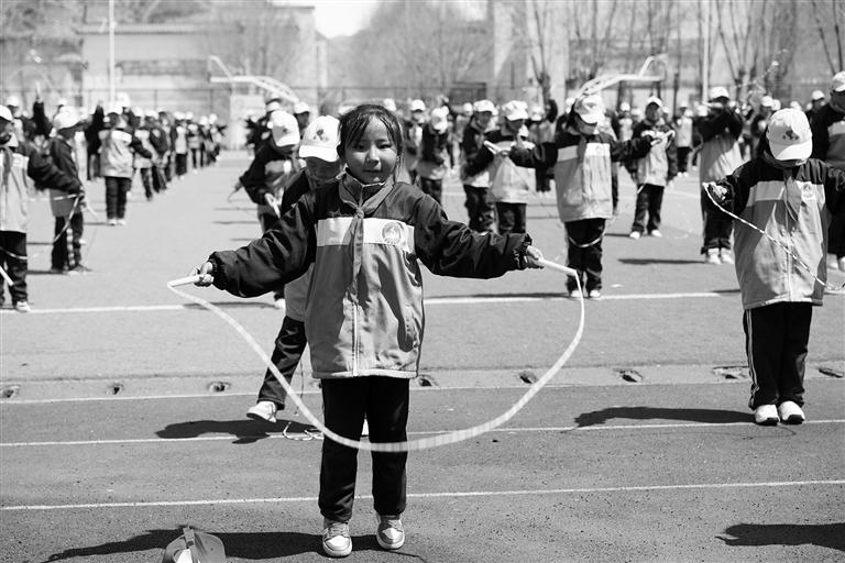活動現(xiàn)場,同學(xué)們拿著跳繩來到操場上,調(diào)整好隊形,和著歡快的音樂節(jié)拍,跟著老師的節(jié)奏進(jìn)行跳繩練習(xí),各班班主任積極鼓勵學(xué)生做到“人手一繩”并跟班指導(dǎo)。學(xué)生們舞動著彩繩,歡快地跳躍,成為學(xué)校大課間一道靚麗的風(fēng)景。