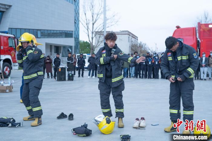 圖為學(xué)生體驗(yàn)試穿消防戰(zhàn)斗服?!∝暩聛硭伞z