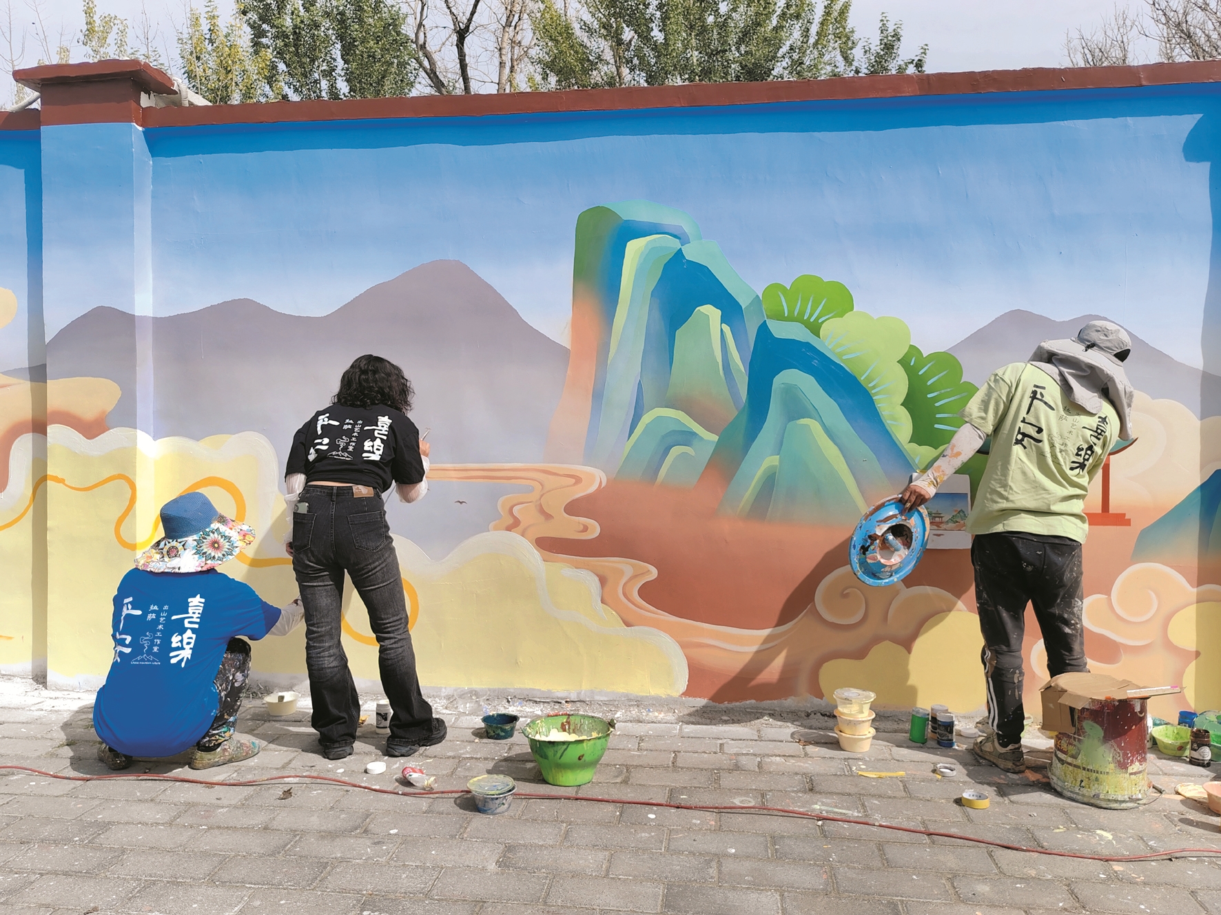 近期,在拉薩城區(qū)大街小巷,一幅幅形態(tài)鮮活、通俗易懂的彩繪被“搬”上了墻,讓原本單調(diào)的墻體靈動(dòng)起來(lái),變成了傳播文明的窗口、學(xué)習(xí)教育的陣地、美化家園的景觀(guān)。從文創(chuàng)園區(qū)《文成公主》實(shí)景劇場(chǎng)向北眺望,西藏大學(xué)河壩林校區(qū)與它隔河相望,一幅構(gòu)思巧妙、主題鮮明、栩栩如生的文成公主進(jìn)藏連環(huán)圖在出山文化藝術(shù)工作室主理人安念初和她團(tuán)隊(duì)的手中,徐徐展開(kāi)。她們手持畫(huà)筆和顏料,有條不紊地進(jìn)行墻體作畫(huà),時(shí)而用筆在墻體上勾勒輪廓,時(shí)而用噴槍在墻上涂刷,將原本簡(jiǎn)單的墻體變得趣味盎然、充滿(mǎn)活力。這幅唯美生動(dòng)、層次豐富、色彩飽滿(mǎn)的文化墻融入了拉薩元素,與周邊環(huán)境相融合,采用3D彩繪形式展示,用優(yōu)秀的傳統(tǒng)文化元素宣傳闡釋社會(huì)主義核心價(jià)值觀(guān)。