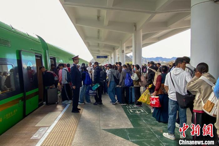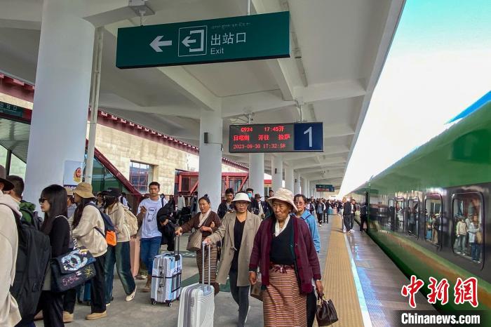圖為暑運(yùn)期間,旅客在日喀則火車站搭乘高原復(fù)興號動車組出行。日喀則火車站 供圖
