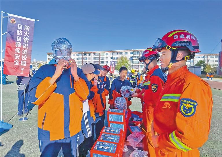 11月5日,2023年日喀則市“119”消防宣傳月活動啟動儀式在日喀則市第三高級中學舉行。日喀則市消防安全委員會成員單位及師生代表共1500余人參加活動。活動中,消防技能挑戰(zhàn)、消防科普互動、消防裝備展覽、改革轉(zhuǎn)隸五周年成果展、消防技能展示等,吸引了大批師生近距離體驗消防、認識消防,進一步筑牢校園消防安全“防火墻”。
