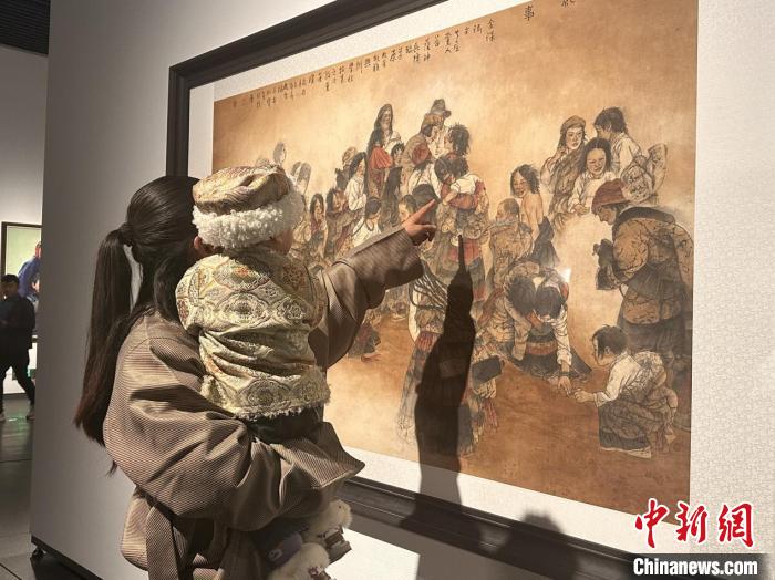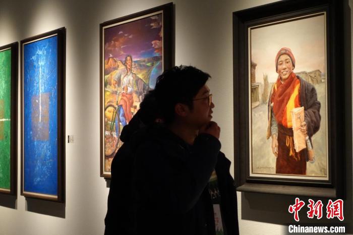 圖為觀眾正在欣賞展覽中的美術作品。澤塔雍措 攝