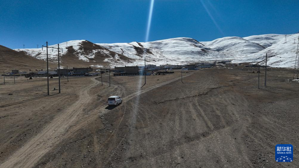 斯曲卓瑪?shù)母赣H開(kāi)車把女兒接回家中(11月15日攝,無(wú)人機(jī)照片)。新華社記者 晉美多吉 攝