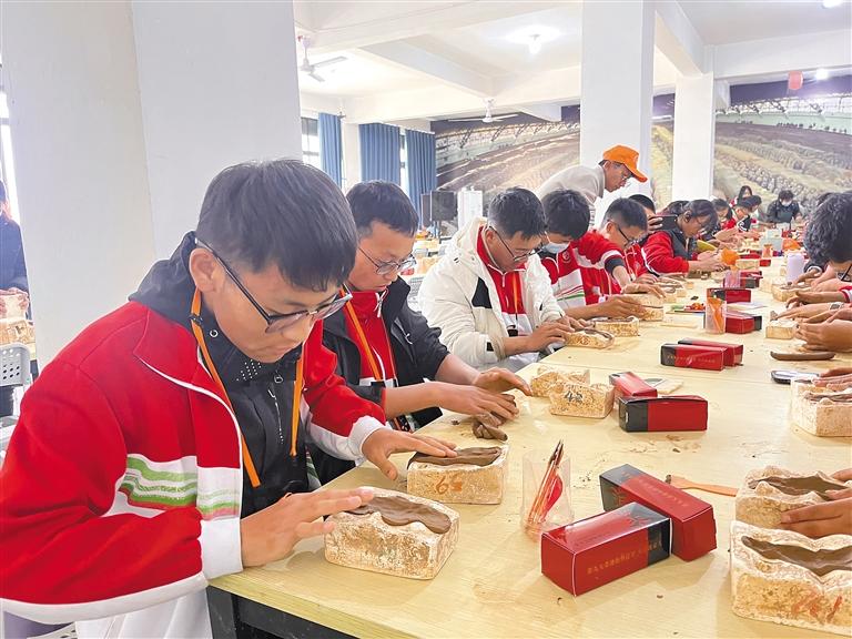 圖為學(xué)生在制作小兵馬俑。記者 鹿麗娟 攝