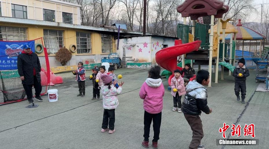 12月23日,家住青海西寧的臺灣青年棒球教練劉興鴻抵達青海省海東市民和縣中川鄉(xiāng)美一小學受災安置點,支起簡易球網(wǎng),與小朋友們一起體驗棒球,并為他們分發(fā)愛心物資。劉興鴻說,這些物資是西寧師大附小的棒球少年們用零用錢購買的,希望將大家的愛心傳遞給災區(qū)小朋友。圖為臺灣青年棒球教練劉興鴻(左)帶領青海民和災區(qū)小朋友體驗棒球。