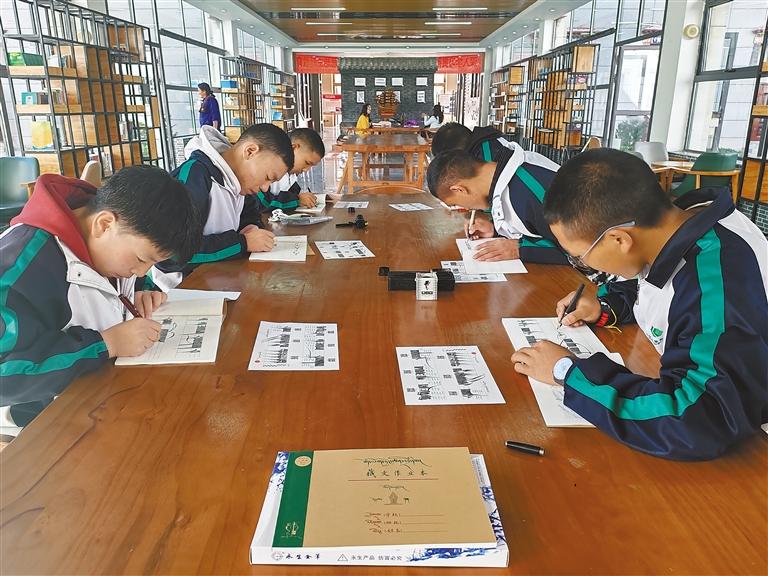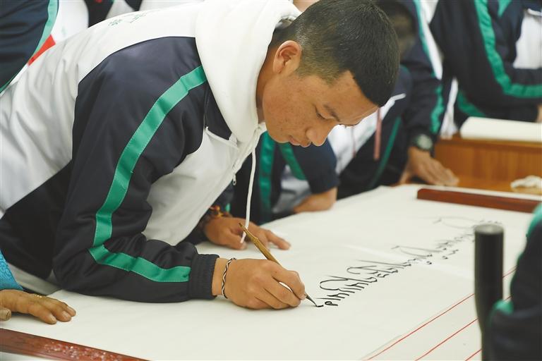 圖為拉薩北京實(shí)驗(yàn)中學(xué)舉行藏文書(shū)法比賽。