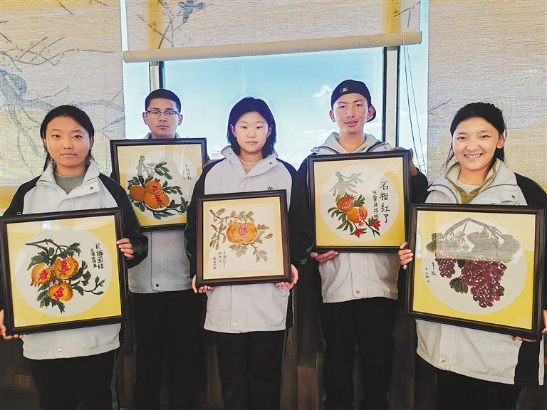 學(xué)員尼瑪次仁和格桑旦增通過(guò)寫(xiě)意花鳥(niǎo)的創(chuàng)作,感受到了中國(guó)畫(huà)的魅力。他們的作品《石榴紅了,籽籽同心》在北實(shí)宏志班赴京游學(xué)中作為禮物,贈(zèng)送給北京友好學(xué)校。