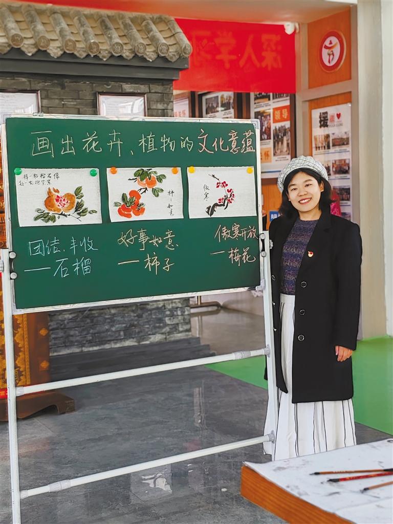 圖為馬瀟雅老師在國(guó)畫(huà)展示課上。