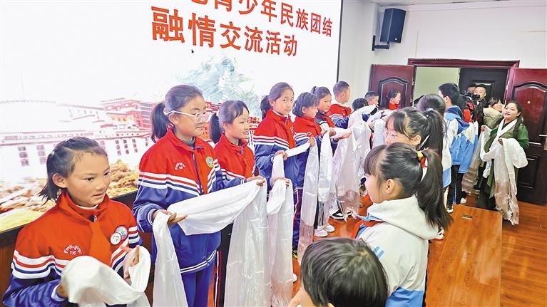 近日,共青團洛扎縣委員會組織24名少先隊員前往湖南省邵陽市大祥區(qū)華夏方圓學校,與該校師生共同開展“手牽手民族團結永不分 心連心同心共筑中國夢”民族團結融情交流活動,促進兩地青少年交往交流交融,進一步鑄牢中華民族共同體意識。