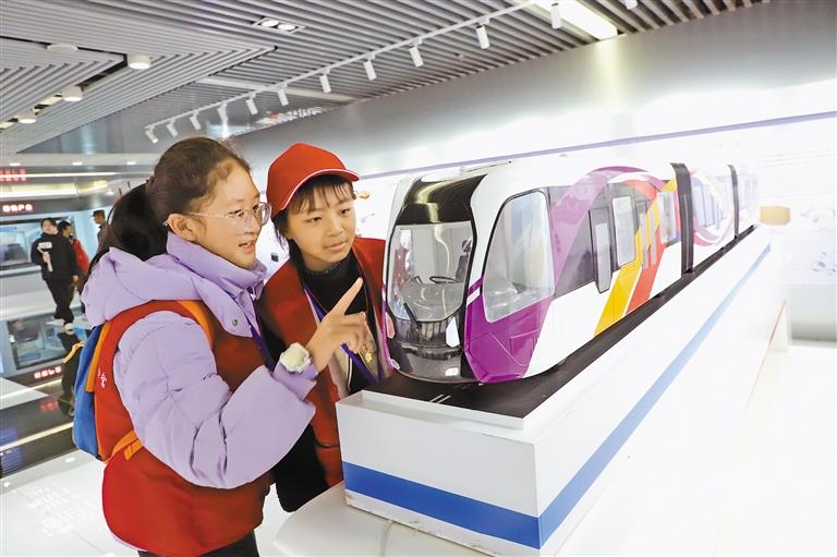 圖為山南、湘潭兩地學生在中車株洲所參觀智軌列車(無人駕駛公交電車)模型。 圖/文 記者 武沛濤 通訊員 顏慧林 李勝財