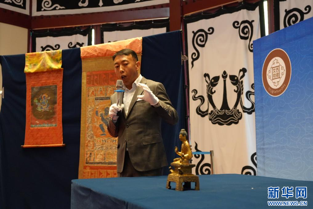 多吉平措向觀眾講解布達(dá)拉宮所藏的彌勒像。(丹玉 攝)