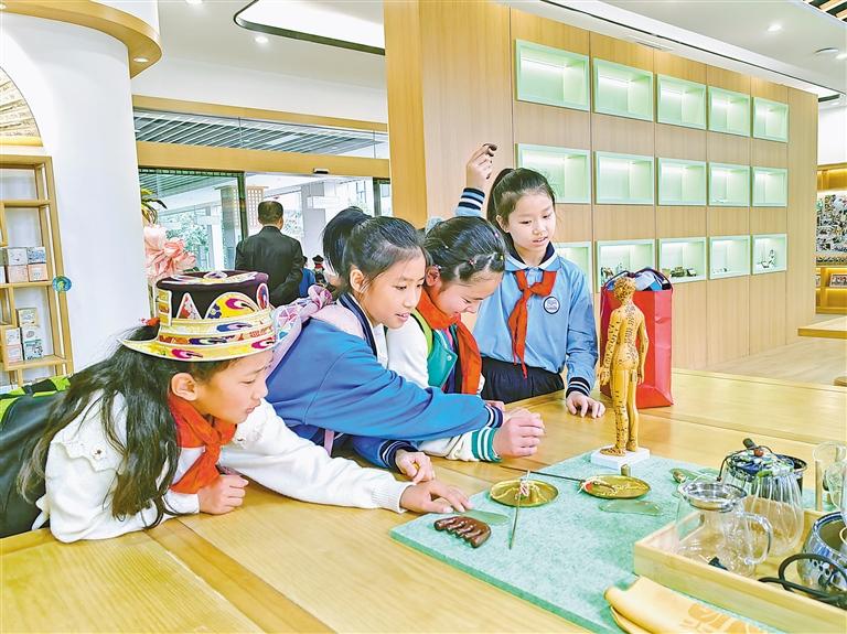 圖為冬令營(yíng)活動(dòng)中,東莞、巴宜兩地青少年一同了解中醫(yī)藥文化。