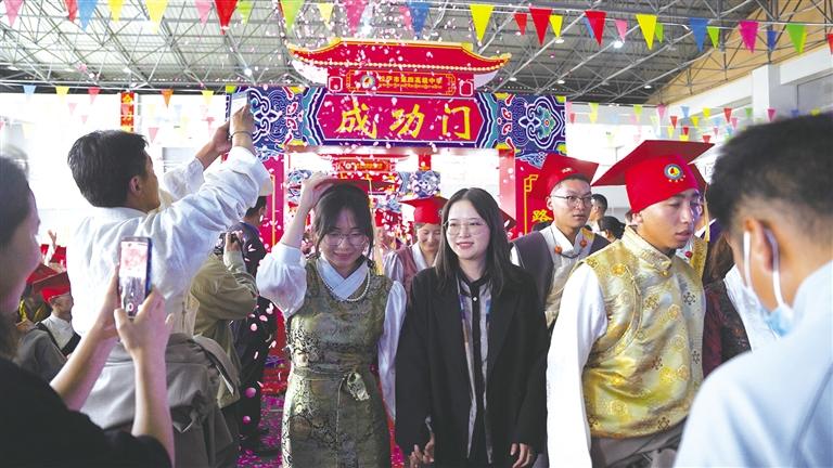活動(dòng)現(xiàn)場,每一位即將畢業(yè)的學(xué)生都要穿過象征著“成人、成才、成功”的三道門。家長代表手捧鮮花,不停地叮囑著孩子;老師們眼眶濕潤,看著即將離校的學(xué)生,充滿了不舍和期待。此刻,千言萬語涌入心間,匯成美好的期盼。